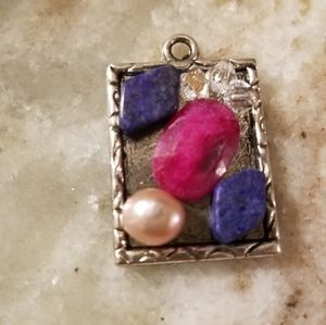 New antique silver pendants with semi-precious stones, lapis lazuli, ruby, freshwater pearl, swarovski crystals, coral and peruvian opal. Sold together. One of a kind.