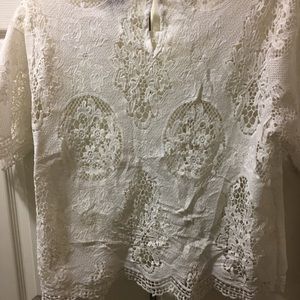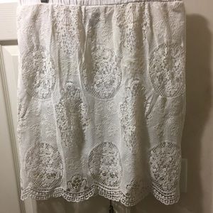 Beautiful two piece white knitted like skirt set. Worn once. Skirt is xl, top is large. Skirt ran small so it’s an large.
