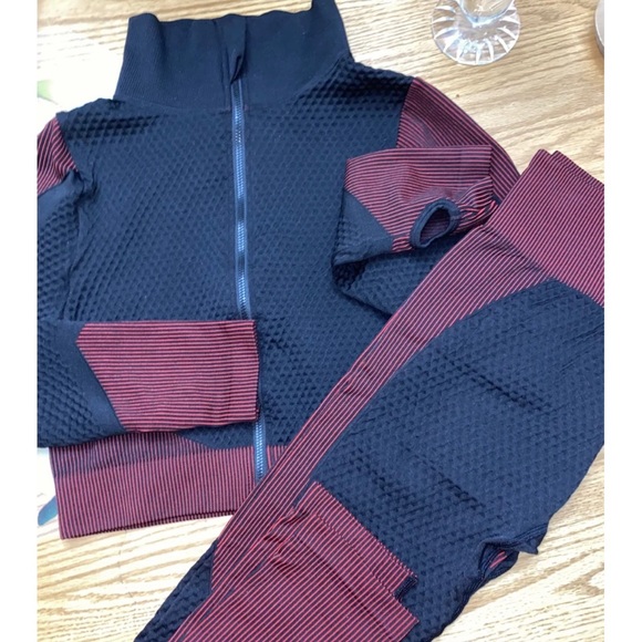 Two piece burgundy n black work out gear