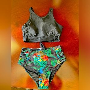 Two piece bathing suite high rise new without tags in original packaging