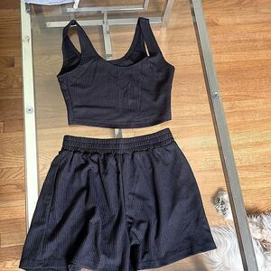 Two piece, black ribknit shorts set,Croptop high waisted, shorts, size s