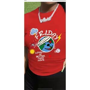 Two piece cartoon graphic have in red and black.Size 14