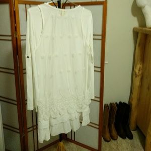 Two piece dress, t shirt under dress with lace overlay. Roll up the sleeves or leave down with or without the overlay it's cute. Wear with leggings in the winter or just the dress for summer. Lace overlay works with a camisole too.