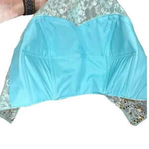 Two piece ice blue Prom dress scoop sheath with beading bodice + sweep train