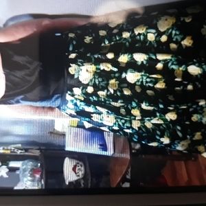 ladies this is sooo beautiful on. two piece dress full skirt with yellow roses and with pockets!! can put phone and small coin purse in pocket. the top of dress fits like a bra stays in place and we added extra fasteners. daughter is 5'2 & dress hit floor perfectly she wore her chucks with it. you can see that the bottom of dress is stitched very well if stepped on it wont tear. has backing to protect it. 14-16 is size possible a slim 18 (dress size is 18 but no way).you wont find another like it.