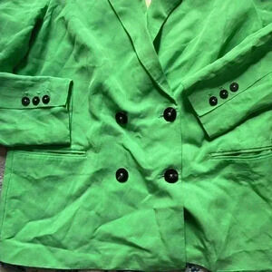The double breasted jacket has no flaws. Chest is 42 inches. The length is 28 inches. It is fully lined and has pockets.