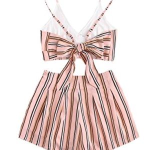 Beautiful crop top and short set. Pink and brown striped. Very cute just a little too small on me.