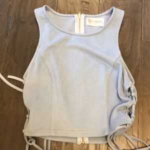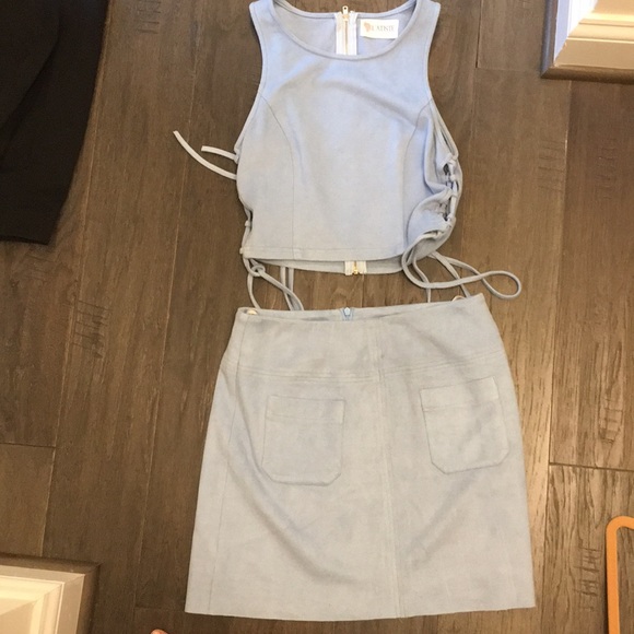 Super cute two piece set! Light blue velvet, size s/m. Super comfortable! Worn once. From a boutique but I don’t remember the name.