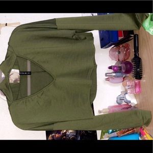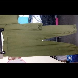 Army green crop top with leggings.