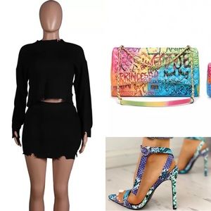 Two piece crop and skirt set all other photos are examples of what to wear with the outfits