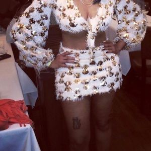 Two piece white and gold set