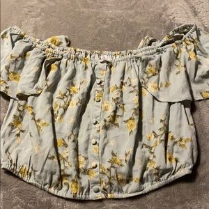 Crop top off the shoulders with a high low skirt. Super cute