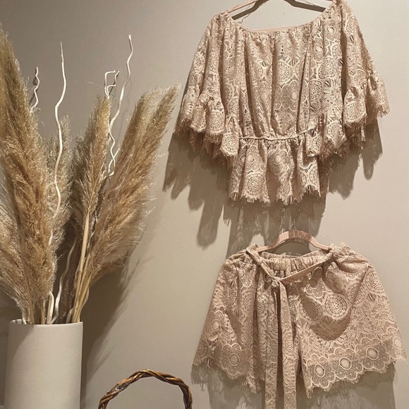 Two piece beige shorts set, top needs an under shirt. Super comfortable!