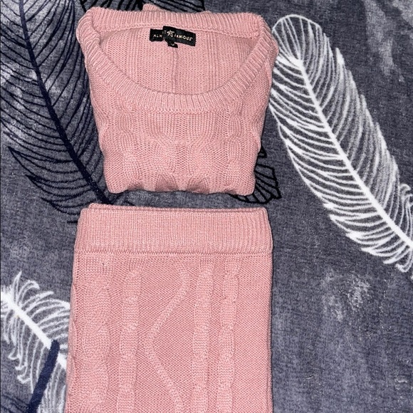 This is a pink two piece set size Xl but runs as a medium to xl. Very stretchy but also fits to sizes. The top is used as a crop top and for the skirt it goes as long as you want depending on how high or low you wear it. It can pass your knees if your looking for a cover up. Brand new but no tag. Never worn it, I pulled the tag off when I bought and cannot return it now.