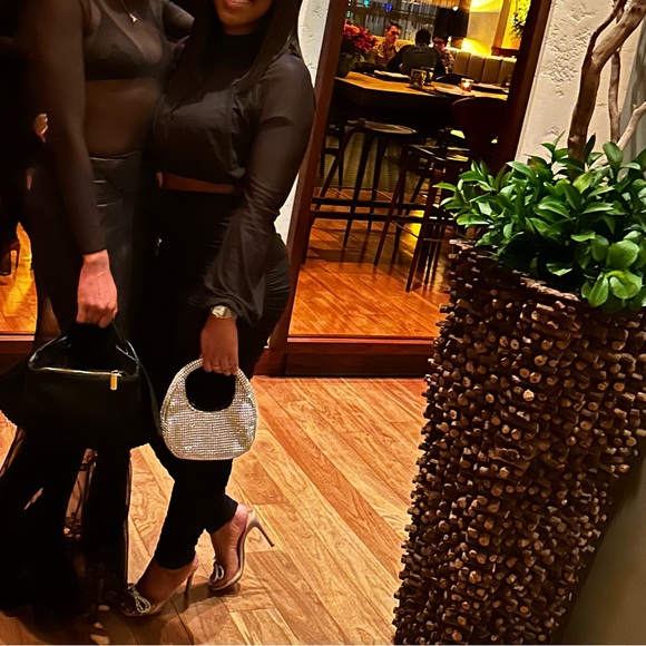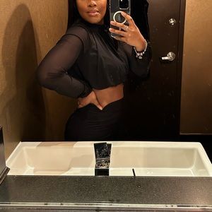 Black set. Ruched bottom and mesh top with open back