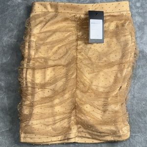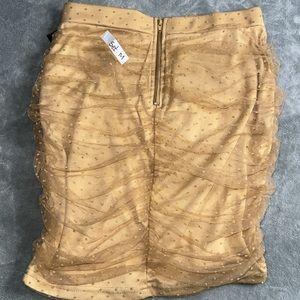 New with tags! Stretchy material, color brownish beige polka dot mesh fabric. Cute cropped top with beautiful design on the arms part.