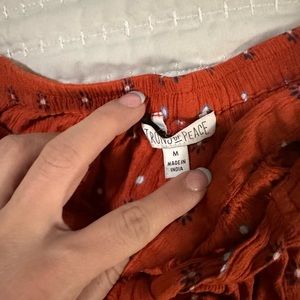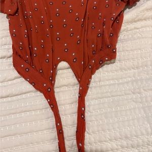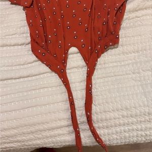 Matching two piece set. The top is a size small, and the shorts are a medium (they run really small.) Top has some threads (shown in picture).