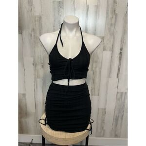 Two piece set black skirt and crop top