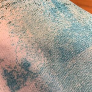 Two piece set of pillow covers. Main color is teal with other blues and white