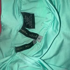 Mint Green color two piece set with a halter crop top and shorts with pockets on the back. Size Small. XS is also a good fit. It is Stretchy, comfortable and cute. No rips or stains.