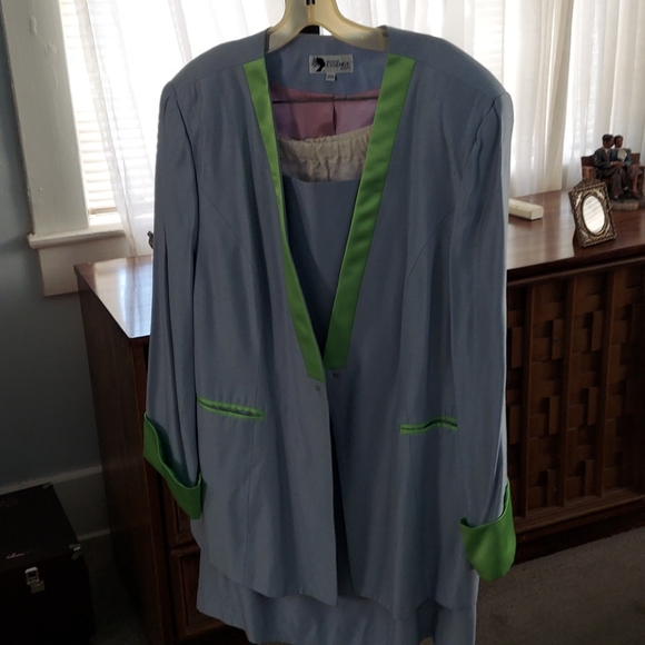 Suit with elastic in skirt. Jacket buttons