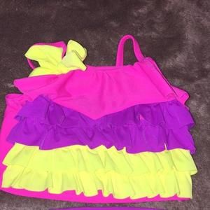 Pink, purple and yellow two piece swimsuit size 6-9 months