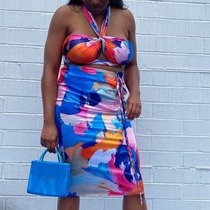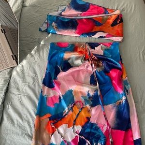 Satin Material.Versatile too can be worn many different ways. worn once in perfect condition. PrettyLittleThing for exposure