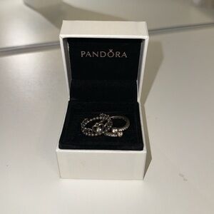 Two ring set: Pandora Crown Ring and Two Sparkling Hearts ring