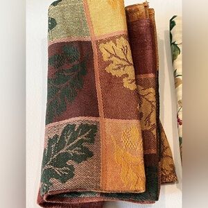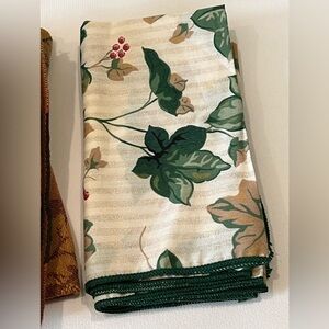 Two sets of 4 Unbranded napkins - Green, Burgundy & Gold - Gold, Green & Ivory