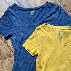 Old Navy navy-blue medium and Target Mossimo yellow/gold medium. 2 super comfy and light-weight v- necks. Both gently worn.
