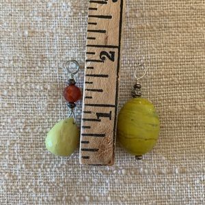 One is a green pendant with silver beads and bail the second is a green pendant with the Coppery Brown glass feed with a silver bail these both have a large enough bail that you could put them on any size chain.