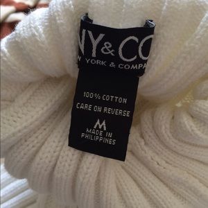 Tan and cream stripe sweater and white ribbed turtleneck sweater bundle. Tan and cream sweater is from H&M. The white turtleneck is from NY&cCo in a size medium but fits like a small.