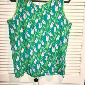 The floral blue and green top does not have a tag on it but measures smaller then the 3X so around 2X