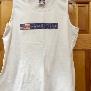 Sonoma Jean Company white sleeveless tee with America graphic across front