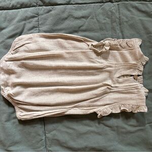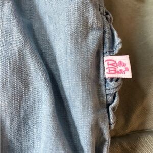 One is a long sleeve denim romper- brand ruffle butts and the other is a short sleeve linen romper unknown brand both size 2-3T