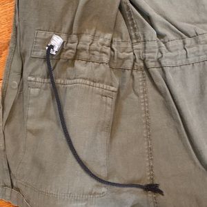 Originally from shop planet blu size small unique take on a utility jacket combining olive green and denim. Convenient hidden adjusting string to cinch the waist. Will consider offers.