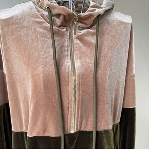 Two toned velour Zara sweatshirt quarter zip hoodie pockets color block size XS