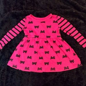 This is for 2 tops in good used condition. Comes from a clean smoke free home. The sweater is Cherokee brand and has never been worn size is 12 months. And the pink with black bows top is from children’s place. Adorable tops size is 12-18 months