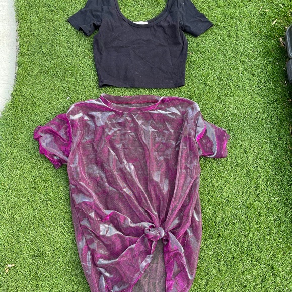 Black crop top and pink iridescent see through top