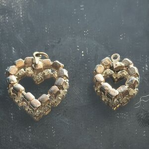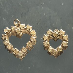 Two vintage rhinestone heart pendants