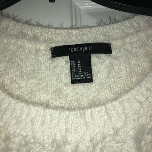 white: knitted fuzzy material, very soft and warm, never worn