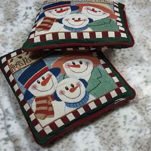 These two Christmas tapestry pillows measure approximately: 17" x 17" each. Pre-owned and in great condition. All offers welcome.