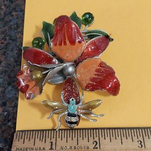 The enamel bee pin is in perfect condition. It is unsigned Chicos from back in the day. The goldtone pin makes quite a statement.