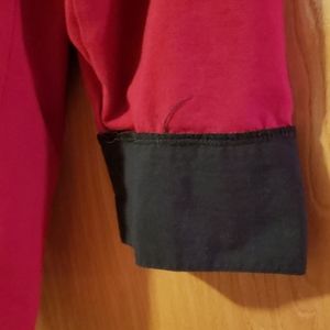 This comfortable top looks like top over a shirt without having the bulkiness of wearing two garments. Made of a stretchy material that could accommodate a wearer from a size above. Sleeves have a fashionable slit.