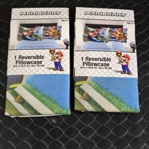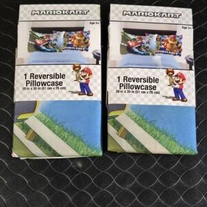 Two Nintendo Mario Kart Race Reversible Pillowcase Super Mario Bros 20”x30” New