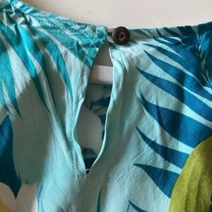 Two Palms Hawaiian Midi Dress Sz L Palm Floral Print Blue Green