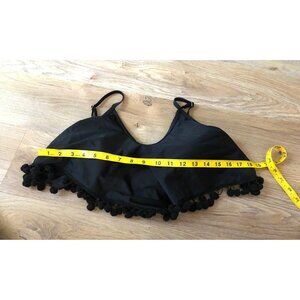 Two-Piece Black High-Waisted Bikini Set With Flounce Top & Pom-Pom Trim Women