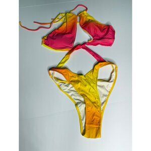 Two-Piece Gradient Bikini Set With Tie-Strap Halter Top & High-Cut Bottoms
