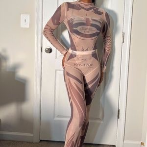 2-piece sheer printed top & leggings set