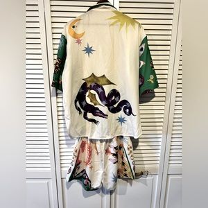 Purchases from an online shop—brand unknown. Two-piece button down and elastic waisted short set with whimsical dragon and astrological print. Never worn. Size XL but fits like a M/L.